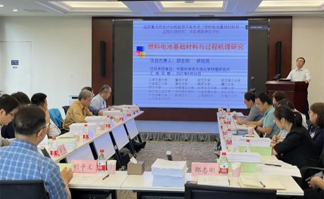 9月26日至27日,由中國科學(xué)院大連化學(xué)物理研究所牽頭承擔(dān)的國家重點研發(fā)計劃項目“燃料電池基礎(chǔ)材料與過程機理研究”課題績效評價會在大連化物所召開,會議采取線上線下相結(jié)合的方式。科技部高技術(shù)中心相關(guān)人員,項目責(zé)任專家明平文教授、李高鵬研究員,評審專家組成員、項目負(fù)責(zé)人邵志剛研究員,以及大連化物所、上海交通大學(xué)、重慶大學(xué)、武漢大學(xué)、武漢理工大學(xué)、大連理工大學(xué)、清華大學(xué)等課題單位代表60余人參加了會議。會議由評審專家組組長湯浩教授主持。