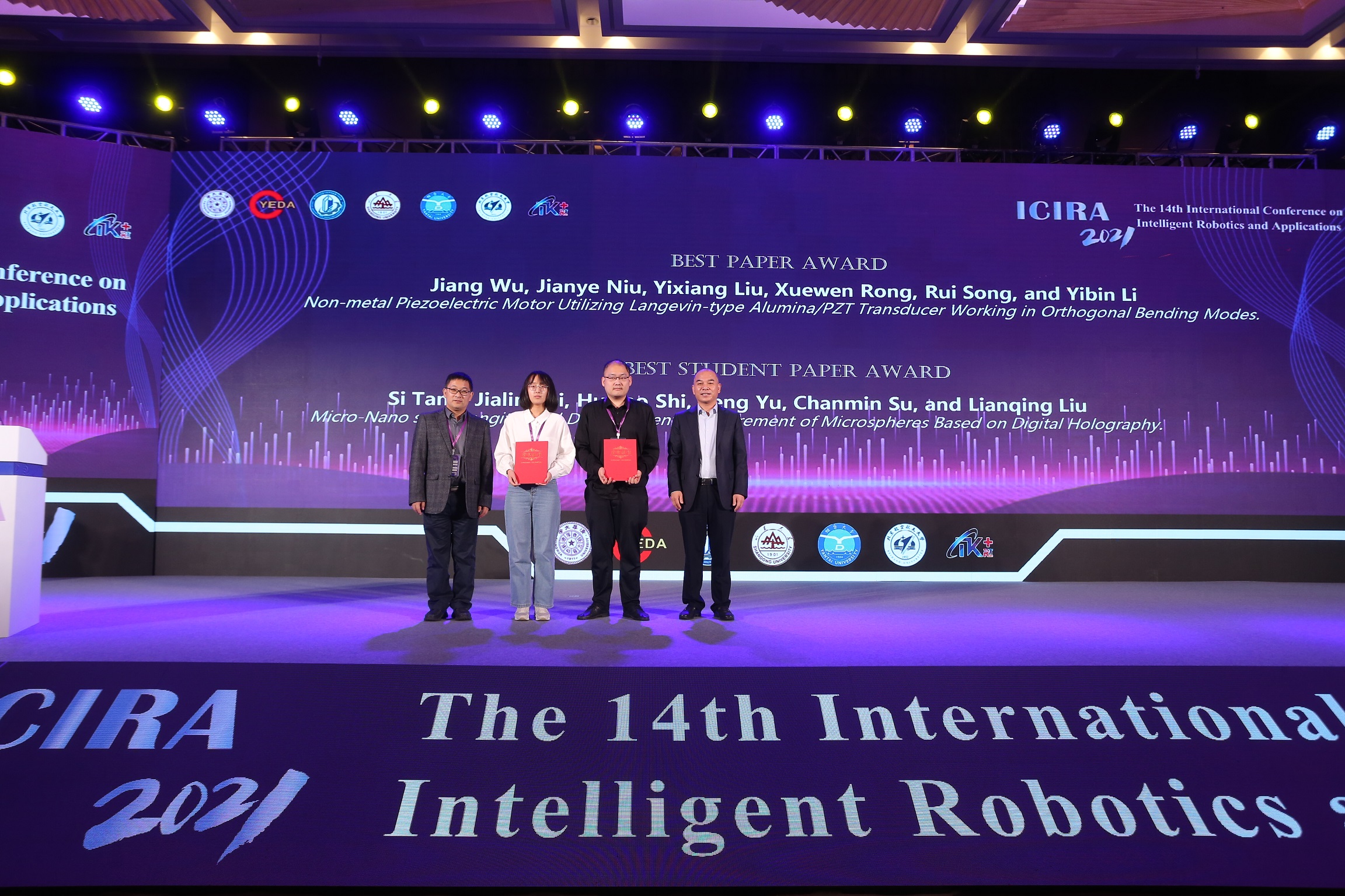 近日,第14屆智能機(jī)器人與應(yīng)用國(guó)際會(huì)議(The 14th International Conference on Intelligent Robotics and Applications : ICIRA2021)在山東煙臺(tái)舉行。中國(guó)科學(xué)院沈陽(yáng)自動(dòng)化研究所微納米課題組博士研究生唐思等撰寫(xiě)的論文Micro-Nano cale Longitudinal Displacement Measurement of Microspheres Based on Digital Holography脫穎而出,獲得最佳學(xué)生論文獎(jiǎng)。