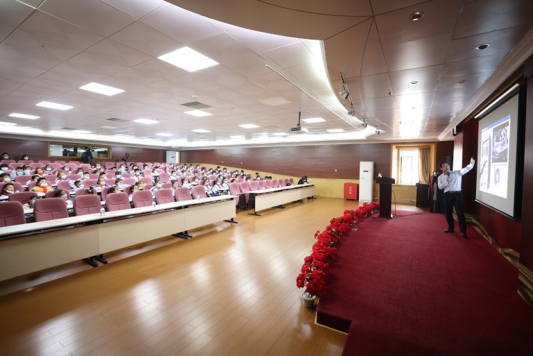 空間自動化技術研究室副主任張偉研究員作了題為《逐夢九天 擁抱星辰大海》的科普報告。他首先向孩子們提出了問題,就是人類為什么要探索宇宙。隨后,他通過短片和豐富的圖片,講解了目前人類探索未知宇宙所采用的幾種技術手段,包括載人空間站等,以及在太空中使用的機器人與自動化技術需要克服的主要技術難題。他還以與地球之間距離為線索,為孩子們講解了目前我國及世界上主要發達國家在月球、火星和小行星探測等方面所使用的科學探索技術。