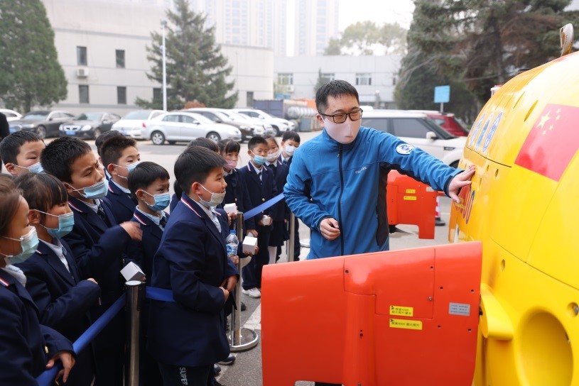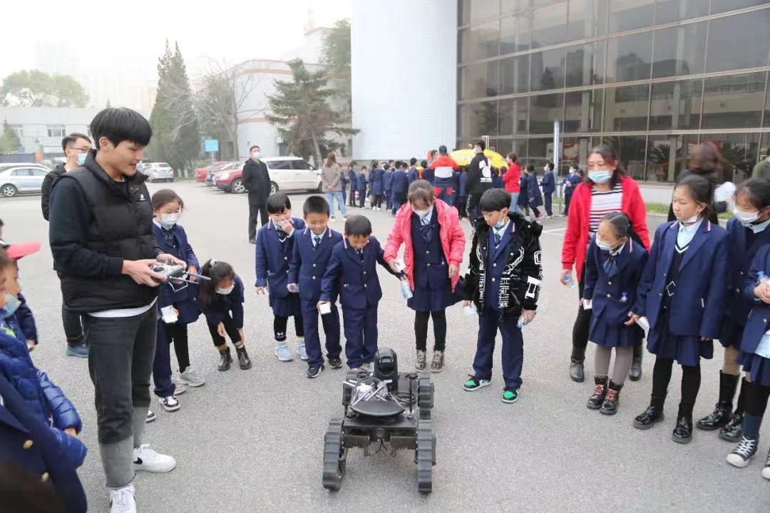 科普報告會結束后,針對小學生特點,活動為同學們精心準備了多款機器人,包括可飛行的仿生撲翼微型機器人,能互動的機械臂,可爬行的“偵察兵”輪履式機器人,還有兩款近期海試歸來的水下機器人。同學們興致勃勃的觀看了多款功能各異機器人的演示,聆聽了研究所科研人員和研究生的講解,與科學來了一次近距離接觸。