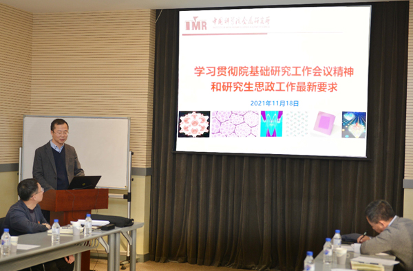 隨后,劉崗副所長作了題為“學(xué)習(xí)貫徹院基礎(chǔ)研究工作會議精神和研究生思政工作最新要求”的主題報告。報告重點介紹了中科院基礎(chǔ)研究工作會議的主要內(nèi)容,結(jié)合實際分析了金屬所基礎(chǔ)研究工作的優(yōu)勢和短板,就加強我所基礎(chǔ)研究工作提出了改進思路。劉崗副所長強調(diào),金屬所科研工作要聚焦國家重大需求,聚焦國家戰(zhàn)略科技力量“該做之事”,研究所“十四五”規(guī)劃要對標(biāo)“四個率先”和“兩加快一努力”要求,真正打通材料研究創(chuàng)新鏈條,推動我所基礎(chǔ)研究工作邁上新臺階。