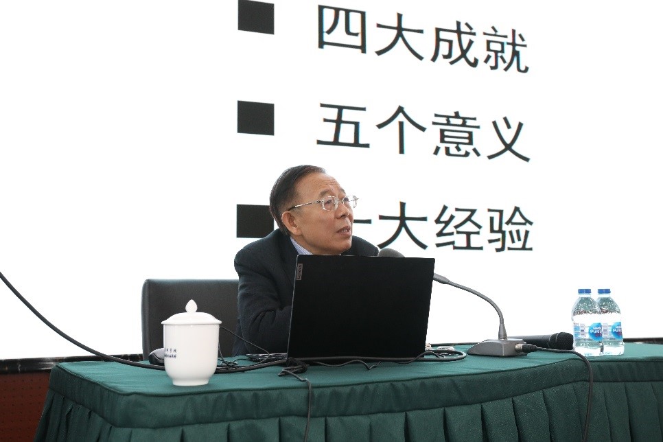 報告會上,孫學敏以《黨的百年奮斗重大成就和歷史經驗——學習黨的十九屆六中全會精神》為題作了專題報告,他通過介紹《中共中央關于黨的百年奮斗重大成就和歷史經驗的決議》的時代背景和意義,緊緊圍繞實現中華民族偉大復興這一主題,詳述建黨以來的三次飛躍和歷史成就,以及十個堅持的歷史經驗。報告內容詳實、理論與史料結合,為與會人員深入學習理解把握十九屆六中全會精神提供了指導。