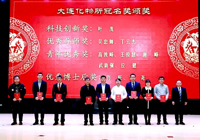 會議表彰了2021年度冠名獎。黨委書記金玉奇宣讀了冠名獎的表彰決定。會議采用頒獎詞和視頻播放相結合的形式,介紹了2021年度冠名獎獲得團隊和個人的突出事跡,并特別獎勵了榮獲2020年度國家自然科學一等獎的科研團隊。所長劉中民為獲獎團隊和個人頒獎。