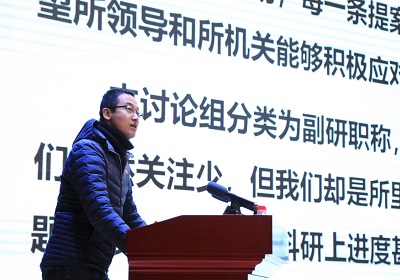 會上,吳忠帥、鄭明遠、周雍進、陳曦、韓晶峰分別代表各小組匯報了討論情況,反映今年的大會報告內容飽滿、激動人心,切實為研究所跨越式發展凝聚力量。與會代表圍繞戰略目標與發展規劃;完善體制和機制建設;黨的建設;管理工作和制度建設;支撐保障體系建設;民主管理、3H工程建設等職工普遍關心的其他問題共六個議題提出了意見和建議。