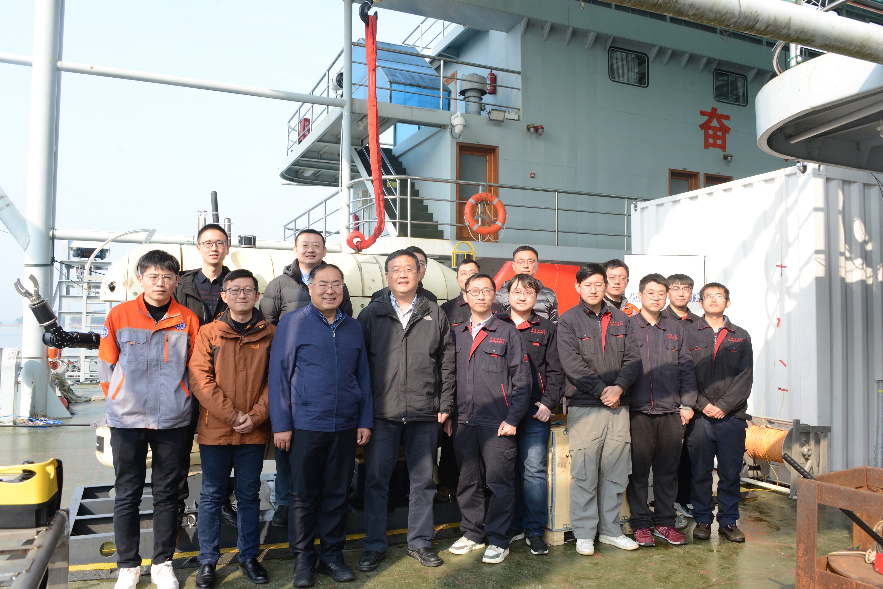 中國地質調查局青島海洋地質研究所黨委書記趙洪偉、沈陽自動化所副所長李碩等與試驗團隊合影