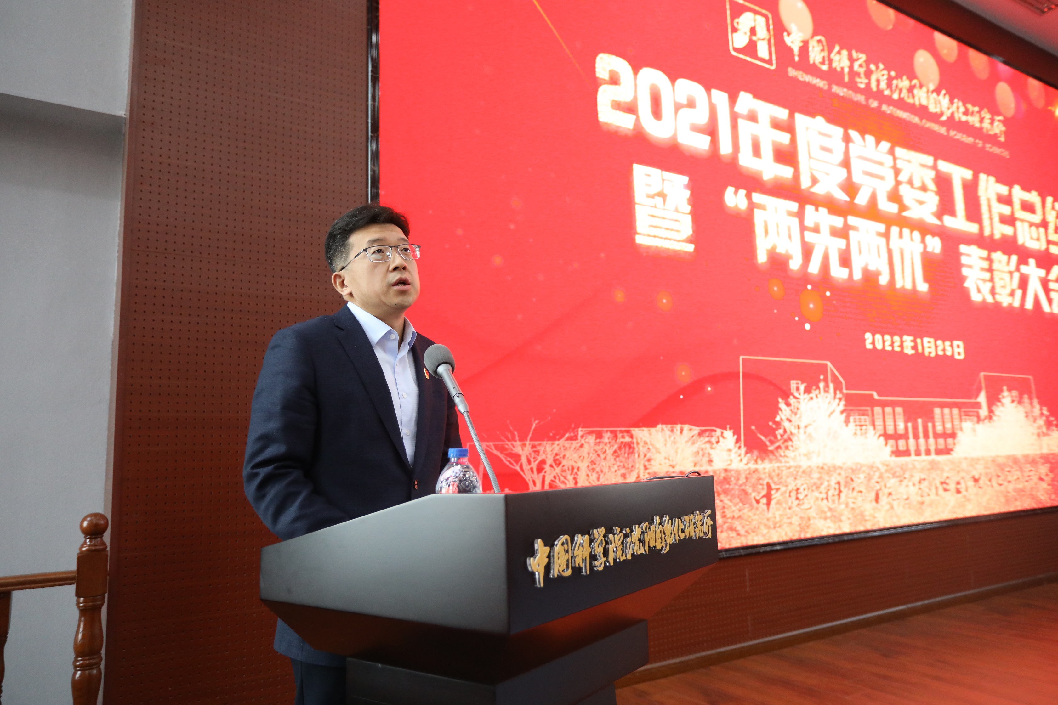 黨委書記桑子剛對2021年黨委工作進行總結。他從加強黨的全面領導、加強思想政治引領、夯實組織建設、加強人才隊伍建設、加強黨風廉政建設、統籌統戰群團和離退休工作六方面,回顧了過去一年所黨委團結帶領全所職工開拓進取、奮發有為,推進黨建工作高質量發展,科技創新成果佳績頻傳的奮斗歷程。他在報告中強調,2021年,在“卡脖子”技術攻關、落實黨建重要任務、面對嚴峻疫情等關鍵時刻,多個黨組織、黨員挺身而出、迎難而上,切實發揮先鋒模范作用。全體黨員要以他們為榜樣,傳承沈陽自動化所精神,心系“國家事”、肩扛“國家責”,為實現建設世界科技強國做出更大貢獻。
