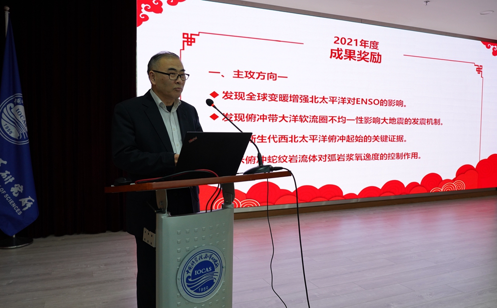 常務副所楊紅生長宣讀海洋所2021年度成果獎勵通知