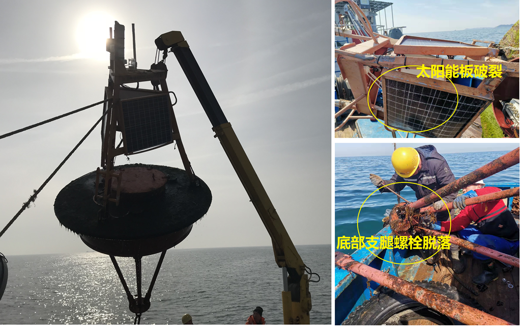 此外,由于執行人員技術經驗不足和個別站位離岸較遠網絡信號差,仍存在暫時無法解決的技術問題,像黃海站02號浮標供電系統故障只能暫時回收上岸,東海站三錨平臺的維護工作比較復雜,執行人員僅能完成設備安全性的應急維護,剖面觀測模塊保養校準等復雜工作,只能待疫情好轉后由海洋所黃、東海站技術人員到達現場進行系統維護。