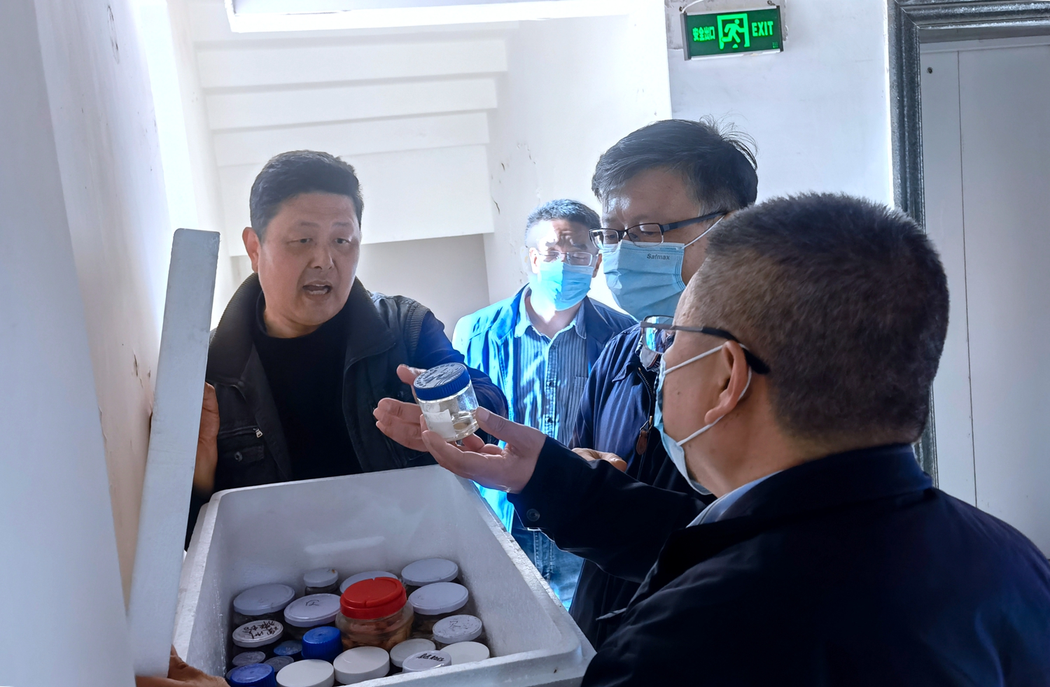 王輝書記查看實(shí)驗(yàn)樣品存放情況