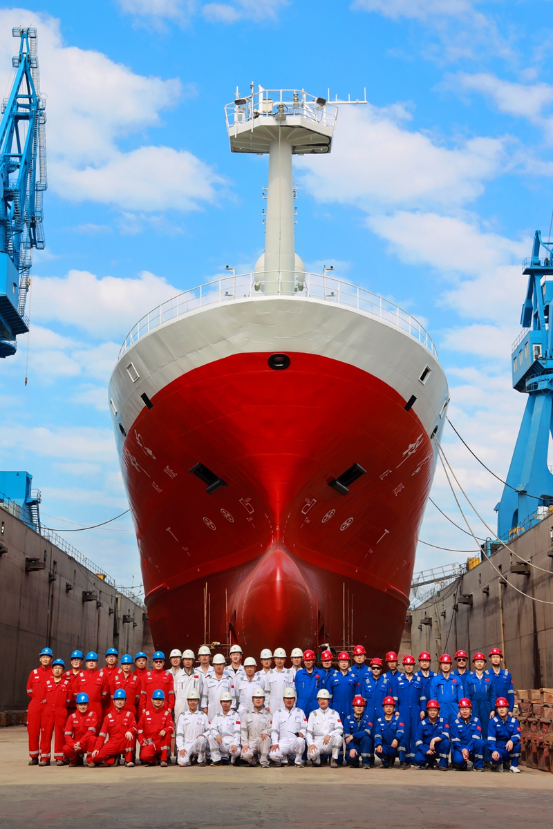 全體塢修工作人員與嶄新的“科學”號合影留念