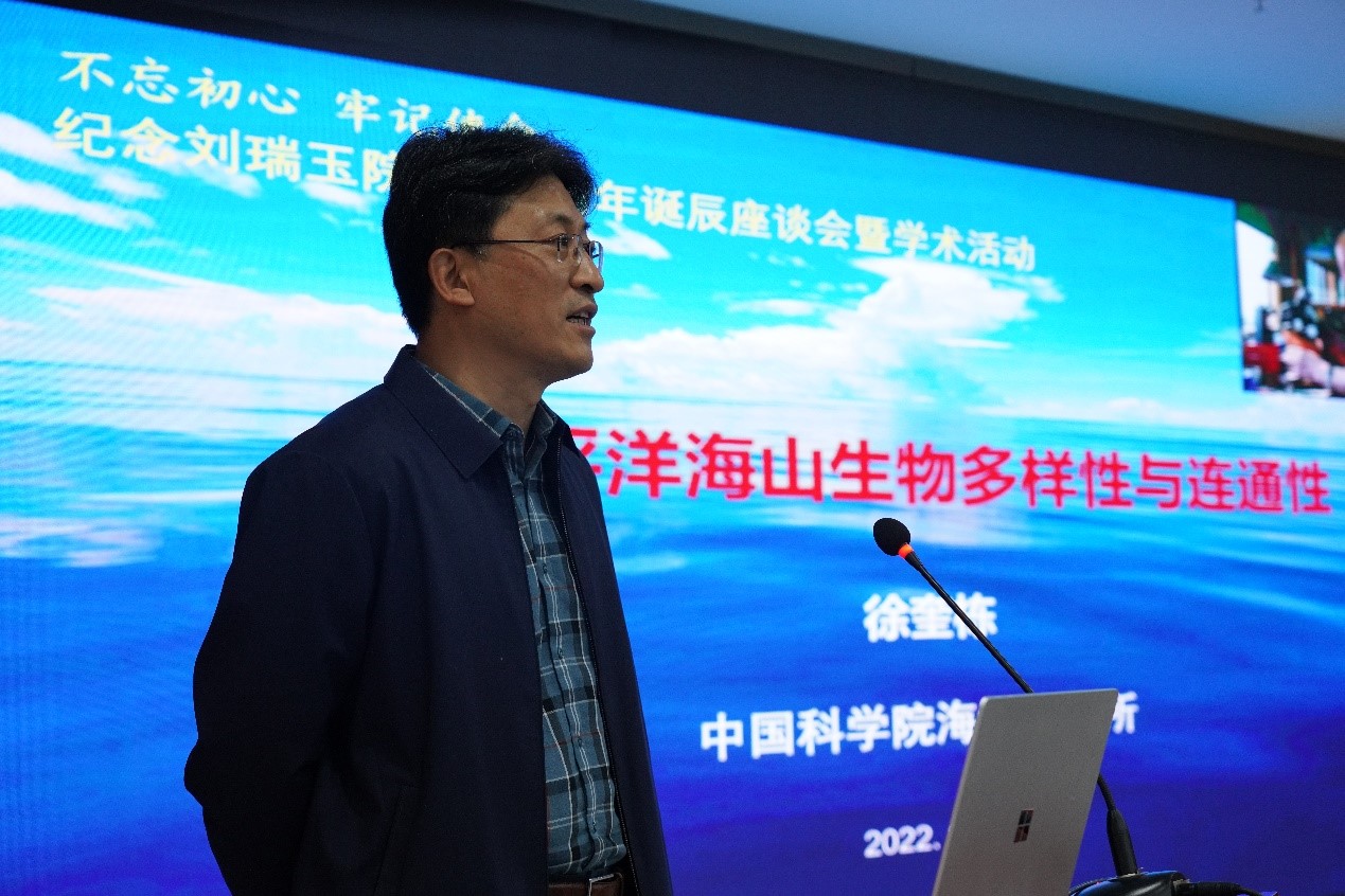 為更好的傳承和發(fā)揚(yáng)劉瑞玉院士精神財(cái)富,座談結(jié)束后舉行了紀(jì)念劉瑞玉院士百年誕辰學(xué)術(shù)活動(dòng),海洋所李新正研究員作“甲殼動(dòng)物最新分類系統(tǒng)”報(bào)告,徐奎棟研究員作“西太平洋海山生物多樣性與連通性”報(bào)告,科研人員圍繞最新科研進(jìn)展進(jìn)行了交流研討。