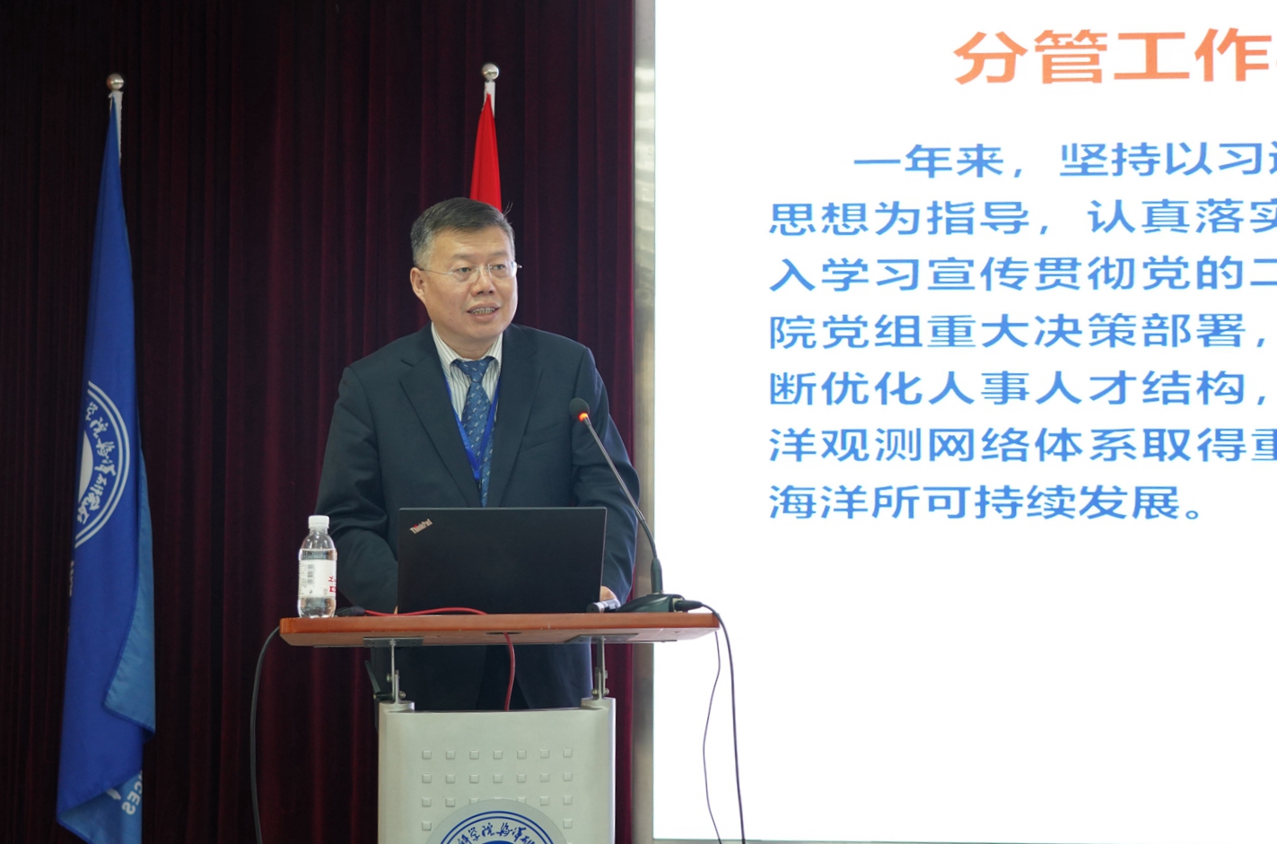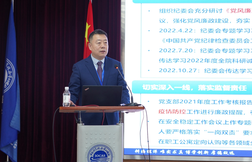 會上,海洋所黨委書記、副所長王輝,黨委副書記、紀委書記畢偉,副所長沙忠利,分別就個人分管工作做專題工作報告和個人述職述廉。7個研究單元負責人分別匯報了實驗室2022年重點工作完成情況及2023年工作思路。