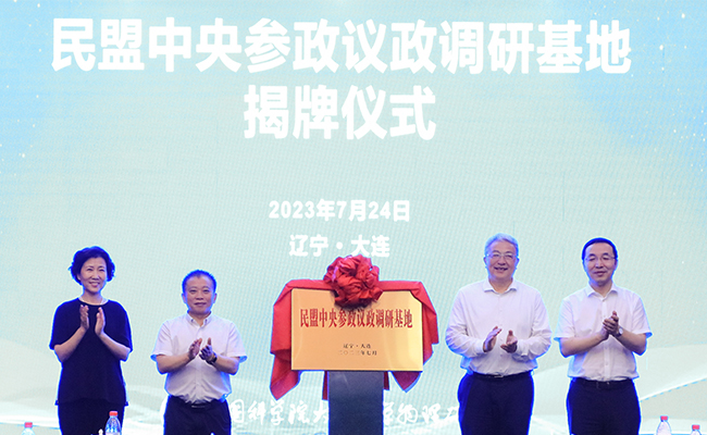 7月24日,民盟中央?yún)⒄h政(遼寧大連)調研基地揭牌儀式在中國科學院大連化學物理研究所舉行。全國政協(xié)副主席、民盟中央常務副主席王光謙,遼寧省政協(xié)副主席、民盟遼寧省委會主委劉中民,遼寧省委統(tǒng)戰(zhàn)部副部長張佩棟,大連市委常委、統(tǒng)戰(zhàn)部部長徐廣湘,大連化物所黨委書記金玉奇,民盟中央副秘書長張峰等出席揭牌儀式。儀式由民盟遼寧省委會專職副主委連家明主持。