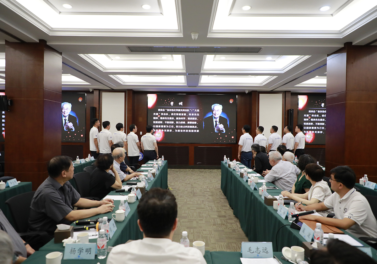 最后,追思會“傳承”環節上,大連化物所“張存浩化學激光突擊隊”和“大連光源突擊隊”代表現場重溫了誓詞:“我們鄭重宣誓,傳承先生精神,繼承先生遺志,獻身科學、挑戰前沿,銳意進取、不斷創新,努力拼搏、勇攀高峰,以國家需要為己任,努力搶占科技制高點,為隊旗增光添彩,為建設科技強國貢獻力量?!笔难藻P錚,矢志報國,以張存浩先生精神為引領,為建設科技強國竭盡全力,這是對張存浩精神最好的傳承與發揚,也是對先生最好的追思和懷念。