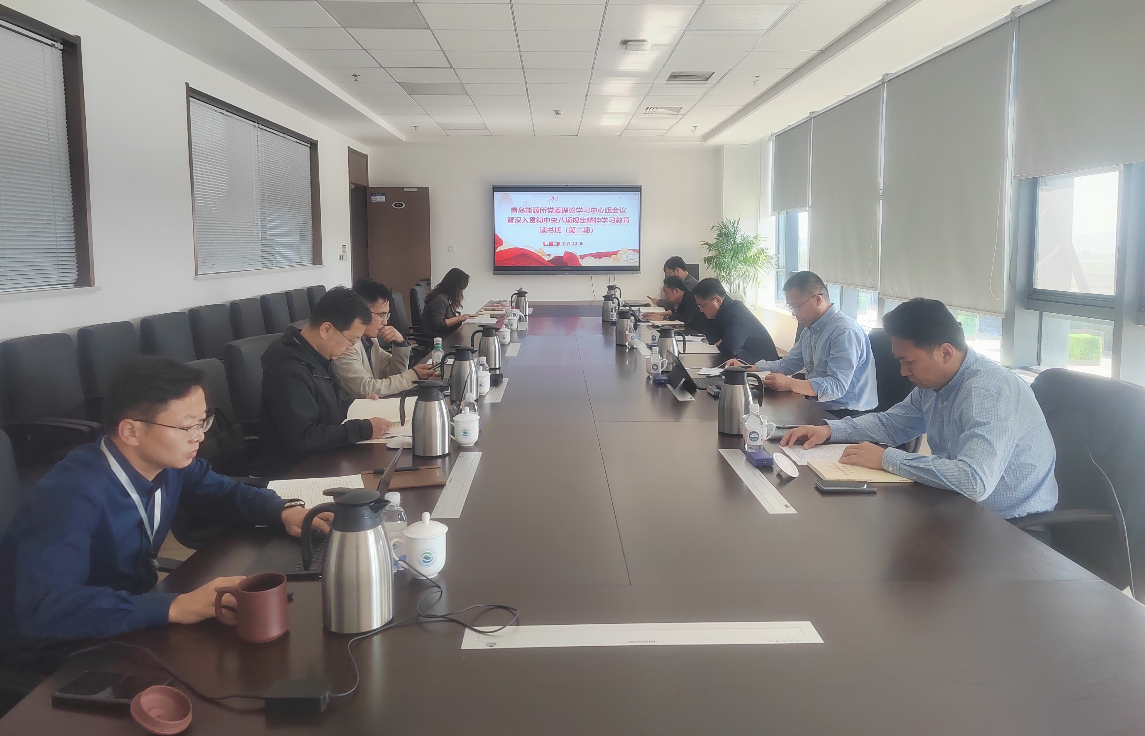 5月12日,青島能源所召開黨委理論學習中心組學習會暨深入貫徹中央八項規定精神學習教育讀書班第二次學習。所長、黨委書記呂雪峰主持會議,全體黨委委員參加會議。