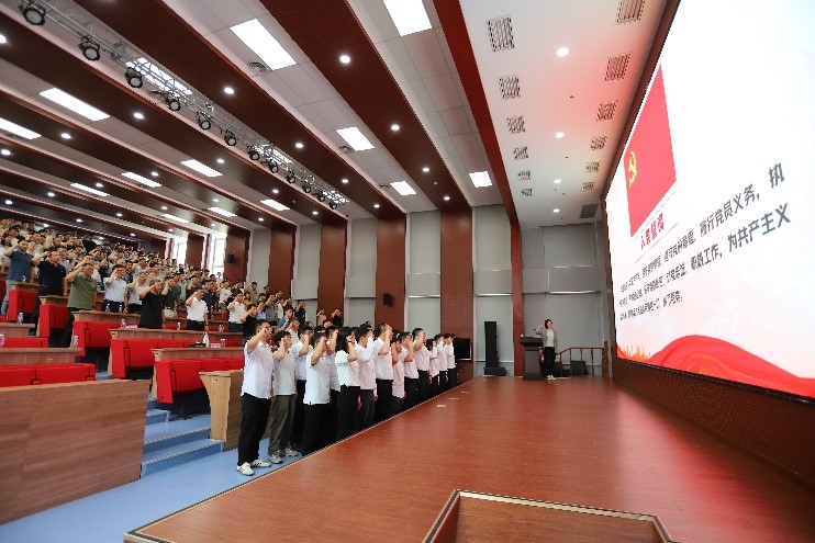 會上,今年新發展的37名黨員面向黨旗莊嚴宣誓,與會黨員共同重溫了入黨誓詞。
